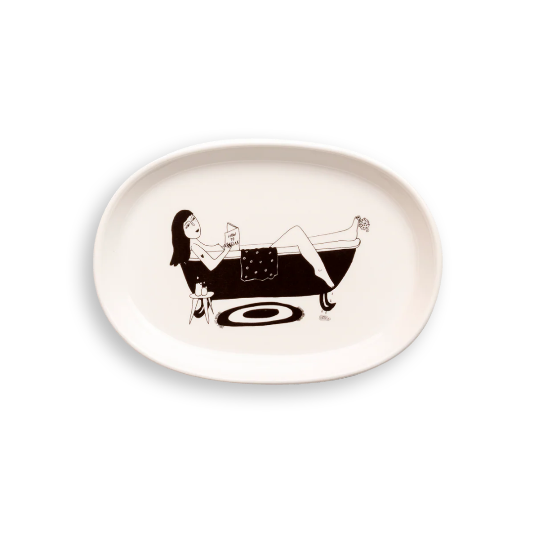 Diese Seifenschale aus hochwertigem Porzellan ist mit einer charakteristischen Illustration von helen b verziert. Sie vereint minimalistisches Design mit praktischer Alltagstauglichkeit und ist ein stilvoller Blickfang im Bad oder in der Küche.